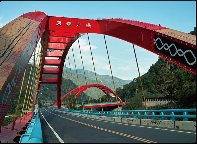일월쌍교(日月雙橋)는 부농족(布農族)문화를 주축으로 사일(射日)영웅 전설의 의거 일교(日橋)와 월교(月橋) 쌍 아치교로 지어졌으며 다리에는 부농족의 문화토템이 그려져 있고, 다리 앞에는 안내판을 세워 부농족의 문화와 역사를 알리고 있습니다. 일월쌍교에는 전망대가 마련되어 있으며 이곳에서 발거름을 멈추어 신의향(信義鄉)의 아름다운 경치를 만끽할 수 있습니다.